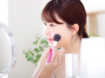 しかし、チークを顔の半分ほどにまで広げてしまうと、顔が横に大きく見えたり、のっぺりと平面的な印象になってしまったりします。また、チークが“ただ塗ってある”ように見えてしまい、古いメイクに見られてしまう可能性もあります。
