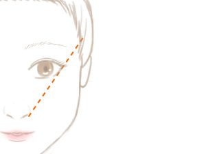 眉尻は眉頭の位置より下がらないようにすると、これだけで、顔の輪郭まで引き締まって見える効果があります。